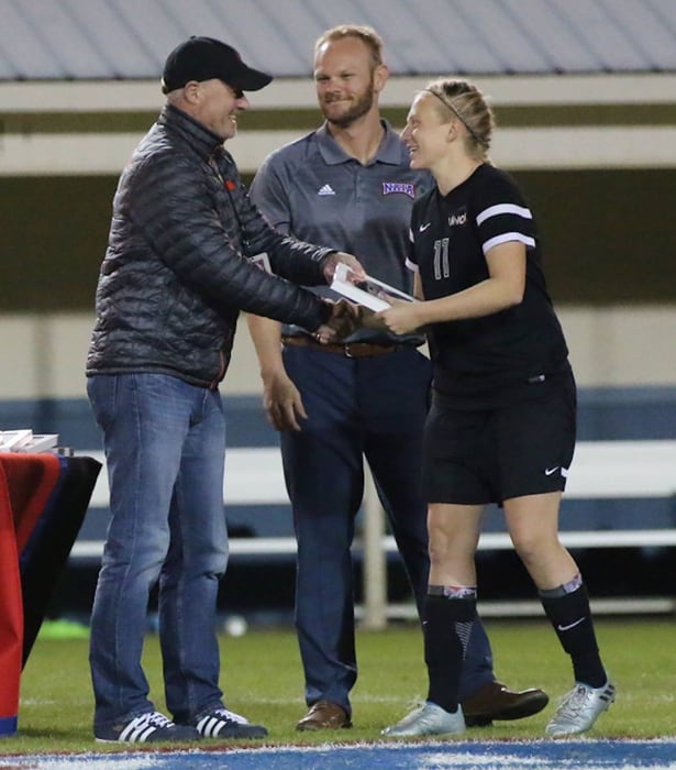 ”Trænerne fra klubberne i NAIA har en organisation, som hedder NSCAA. Der har trænerne og nogle folk i NAIA stemt på ”NAIA-NSCAA National Player of the Year 2016’, som jeg er blevet tildelt. Overrækkelsen finder sted den 12. Januar i Los Angeles, så der rejser jeg over sammen med tre andre spillere, vores cheftræner og vores assistenttræner for at modtage prisen.”