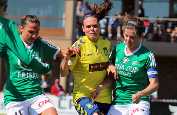 I perioden 2012-2015 spillede Sofie Junge Pedersen (t.h.) for topholdet Fortuna Hjørring.