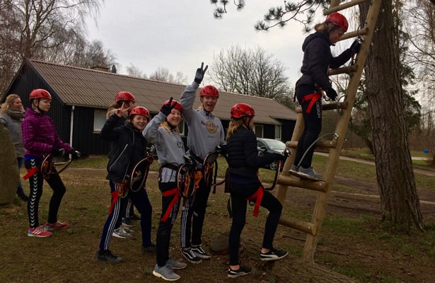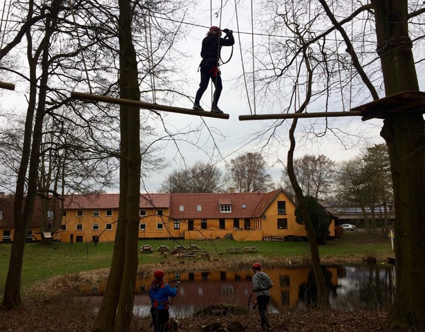 Om eftermiddagen var tiden kommet, hvor pigerne fra NFC skulle bryde nogle grænser. De skulle nemlig en tur op i S/E/S på Toppen, skolens Go-High bane. Med instruktør og sikre seler gik turen ellers derudaf over søen via svævebane og en tur rundt i træerne.