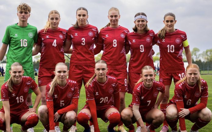 Landstræner Niels Lawaetz havde foretaget en enkelt ændring i startopstillingen til opgøret, hvor FC Nordsjælland-backen Carli Scheuer var at finde med anførerbindet på venstrebacken efter at have misset første opgør.